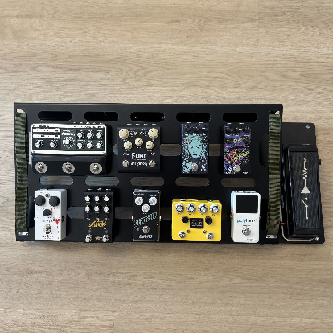 Grazie al layout su due file, la SB01 consente di organizzare fino a 10 pedali formato standard in modo ergonomico, mantenendo tutto perfettamente accessibile durante l’esecuzione.