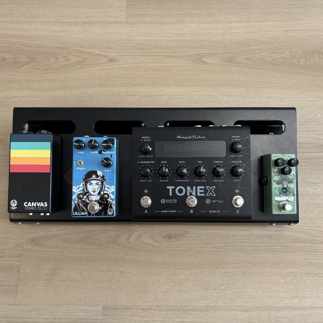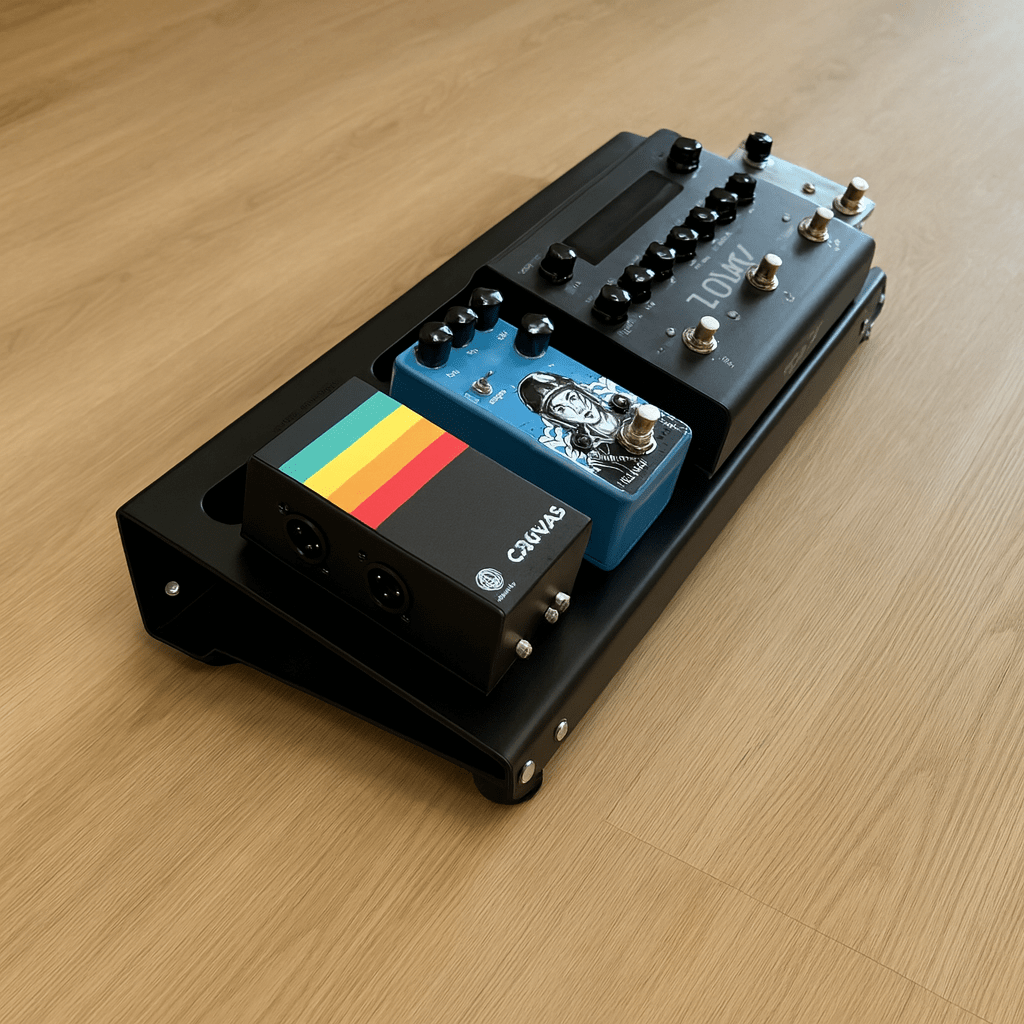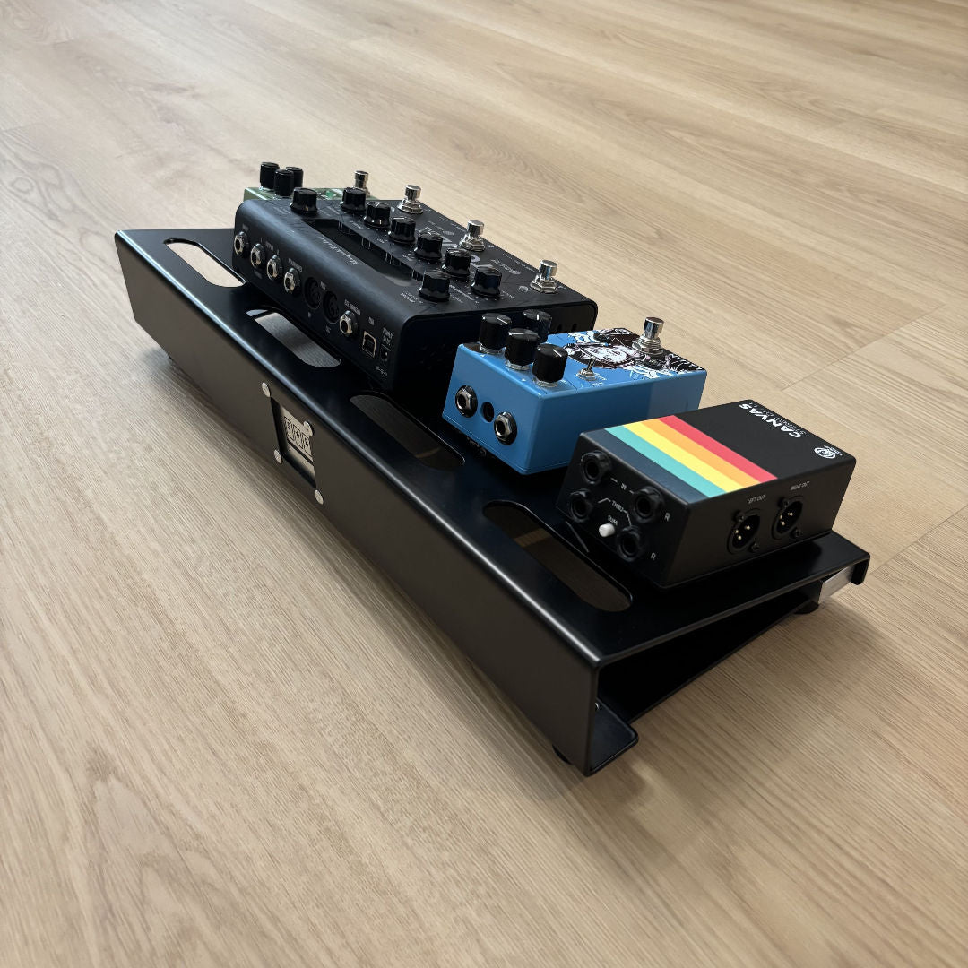 Il layout compatto consente di organizzare in modo ordinato da 4 a 5 pedali formato standard, mantenendo tutto sempre sotto controllo e facilmente accessibile.